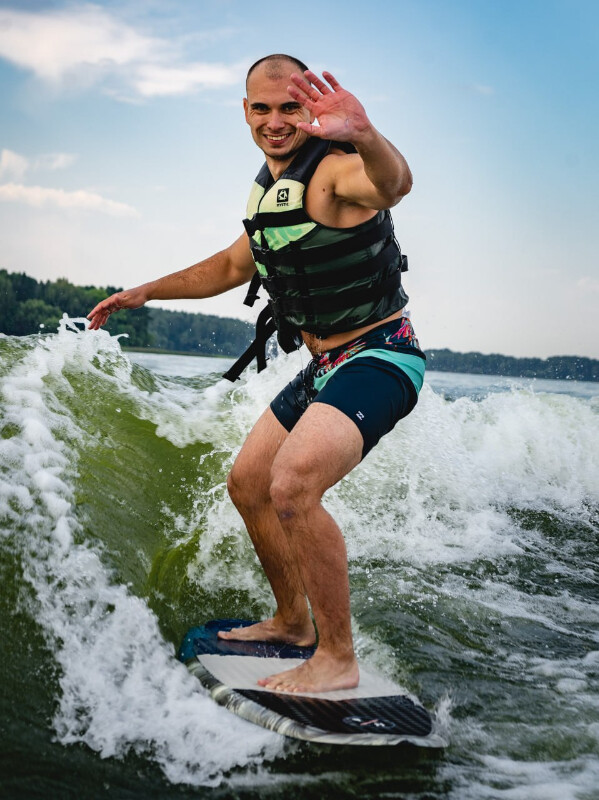Открой уникальный мир вейксёрфа вместе с WakeJump. Опытные инструкторы с многолетним стажем помогут вам встать на доску, освоить азы и почувствовать себя настоящим райдером! Мы подберем специально под Вас все необходимое оборудование - топовые доски, гидрокостюмы (в холодную погоду), спасжилеты. От вас нужно одно - позитивный настрой!